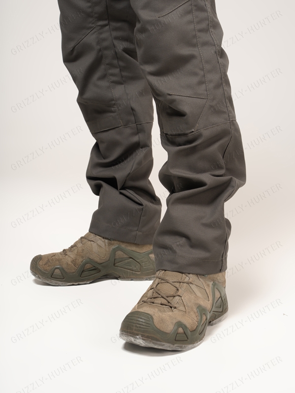 Усиленная паховая область в виде клина, усиленные наколенники с карманами для дополнительных наколенников.